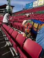楽天球場の清掃が始まりました!